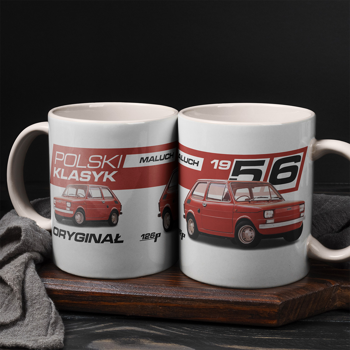 Wyjątkowy design – klasyczny Maluch w stylowej grafice przyciąga wzrok i budzi wspomnienia od pierwszego spojrzenia.
